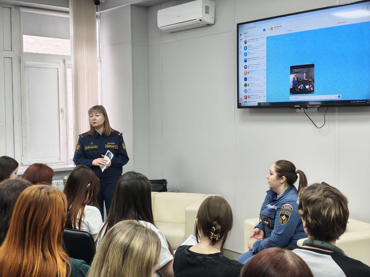 Сегодня психологи МЧС Углова Марина Олеговна и Леушина Дарья Константиновна приоткрыли секреты своего нелёгкого ремесла для студентов-психологов НГУЭУ
