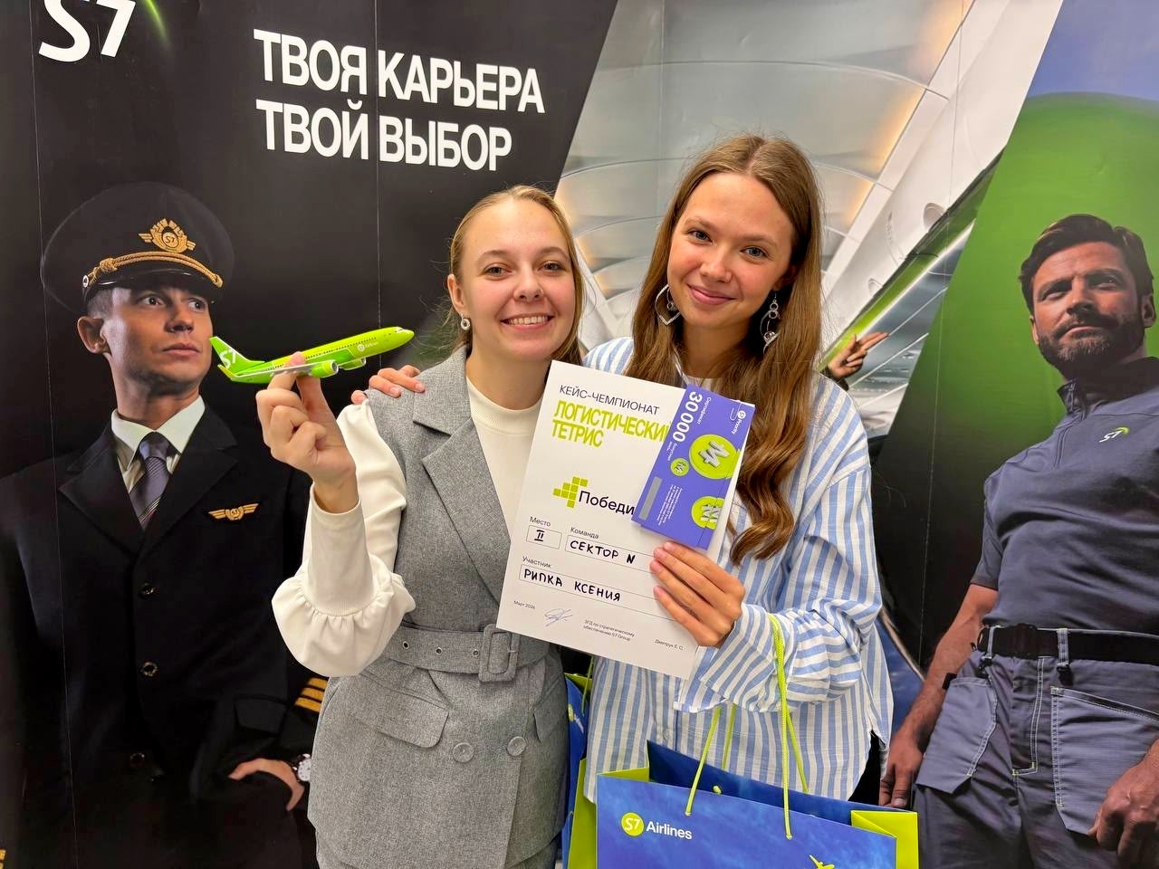 На прошлой неделе в Новосибирске состоялся финал кейс-чемпионата от «S7 Airlines». В мероприятии приняли участие более 80 студенческих команд со всей страны, однако в финал вышли только десять, и среди победителей оказались студентки НГУЭУ Ксения Рипка (3 курс направления «Социология экономики и маркетинга») и Ангелина Чирцова (4 курс направления «Туризм»).