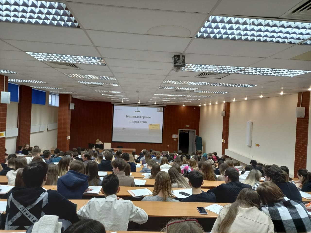 Перед ребятами выступил с речью проректор по внешним связям НГУЭУ Ромашин Владимир Николаевич, а затем студентов познакомили с индустрией 1С, рассказали об опасности компьютерного пиратства. После перерыва выступление продолжили партнер 1С-Рарус Новосибирск и партнер Гигабайт. Студенты заполнили анкеты на стажировку, позадавали интересующие вопросы, а в конце мероприятия получили сувениры от 1С.