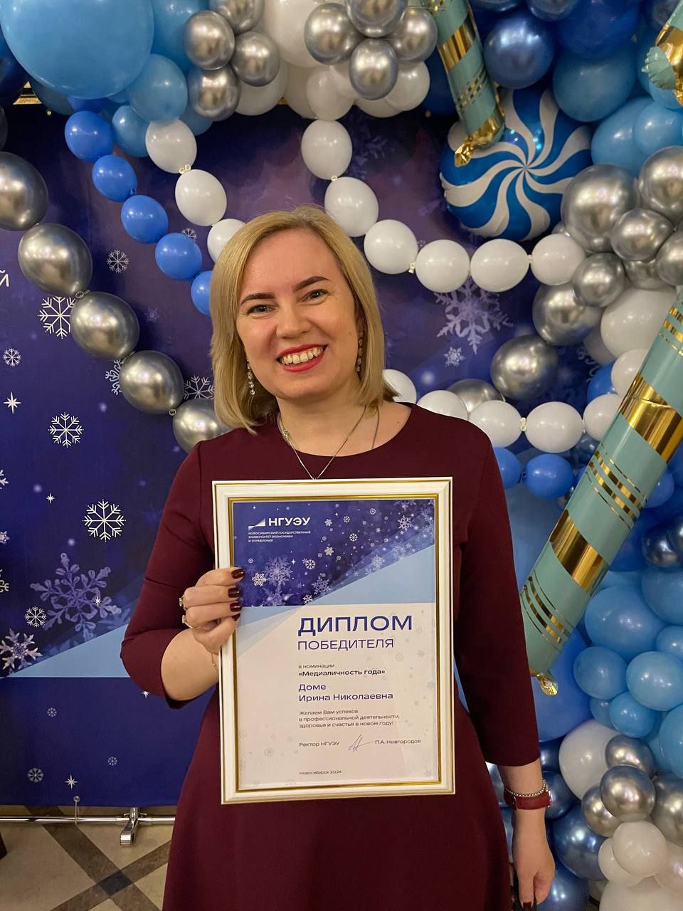 Второй год подряд Ирина Николаевна Доме становится обладателем новогодней премии в номинации, связанной с медиа. В этом году - "Медиаличность года".