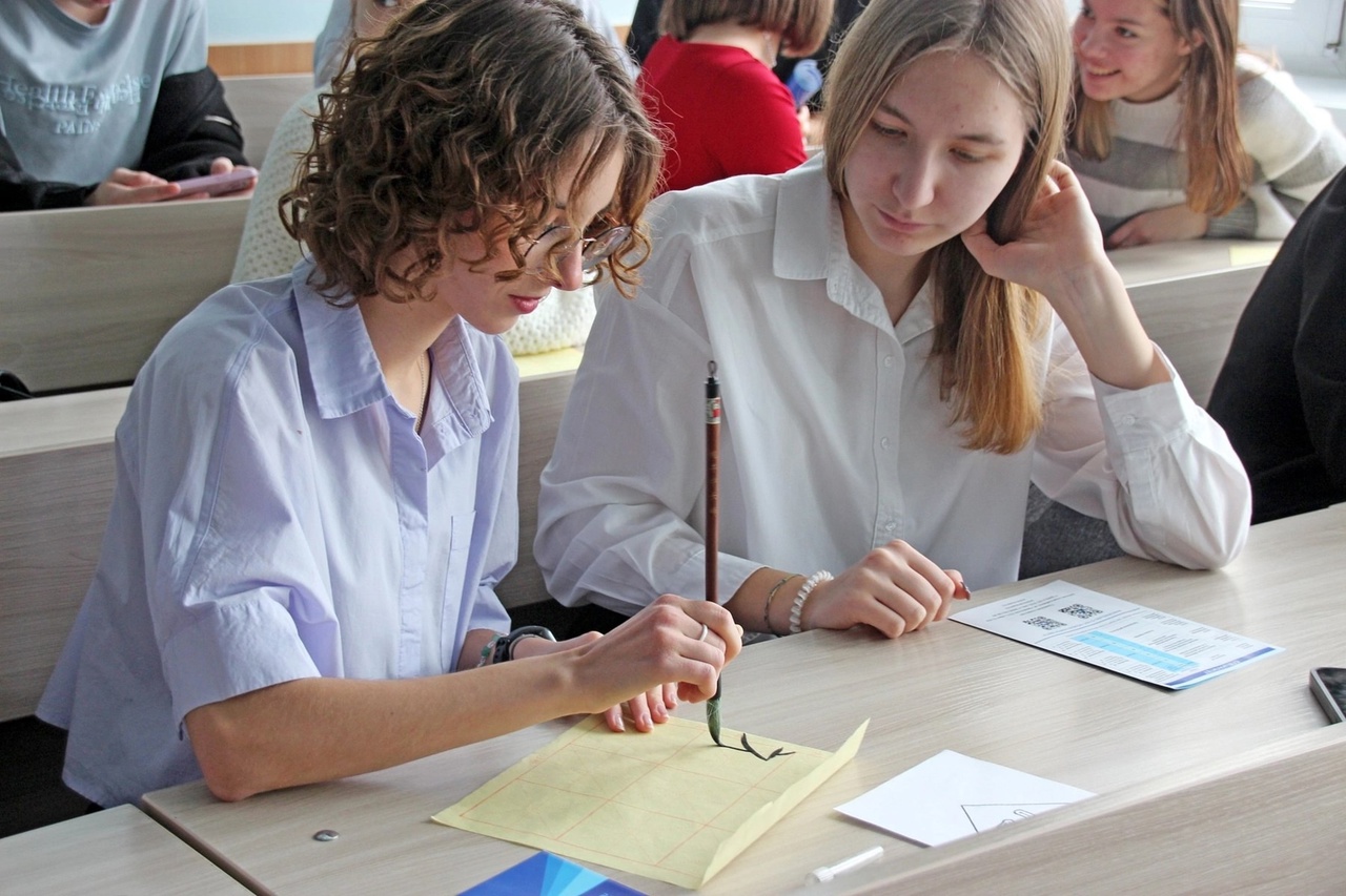 Участники пробовали писать иероглифы настоящими китайскими кистями и тушью на рисовой бумаге!