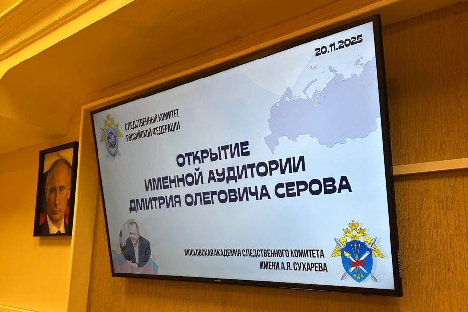 В тот же день в академии была открыта аудитория имени Серова. В ней размещен бюст ученого, информационные стенды рассказывают о его жизненном пути, наследии и идеях, представляют его научные работы, личные вещи, фотографии и награды. Ректор академии Алексей Бессонов в приветственном слове отметил огромный вклад Дмитрия Серова в изучение становления и развитие отечественных следственных органов.
