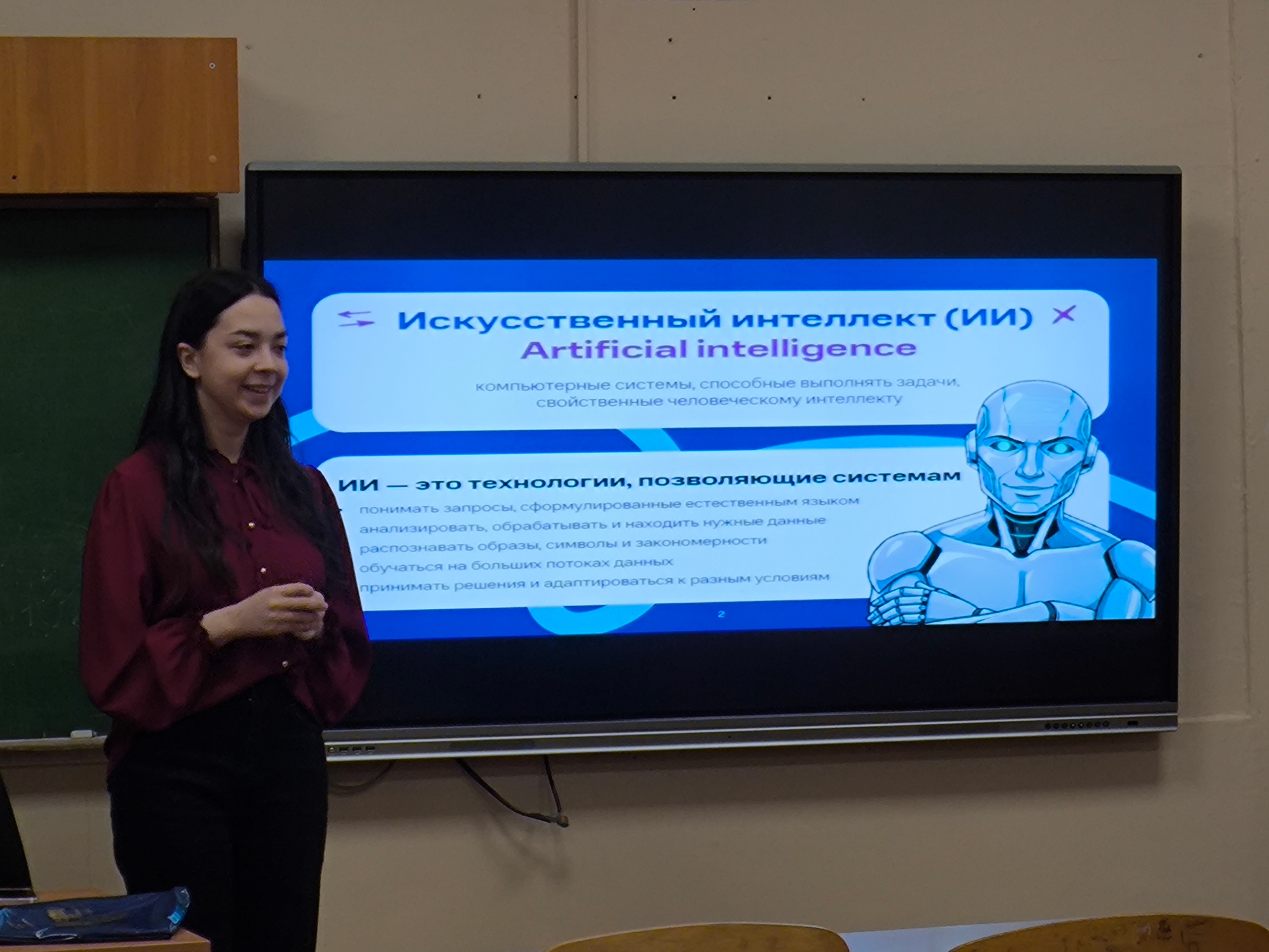 В рамках Урока студенты НГУЭУ специальности Экономическая безопасность Валерия Протас, Полина Новикова и Анастасия Глухарева не только рассказали об угрозах, которые таит в себе искусственный интеллект, но и поделились своим опытом участия в финальных неделях Олимпиады. Начальник отдела анализа и оценки рисков МРУ Росфинмониторинга по СФО Владислав Бирюков в ходе беседы призвал школьников критически оценивать возможные долгосрочные последствия от принятия неверных решений и не соблазняться на сиюминутную выгоду.